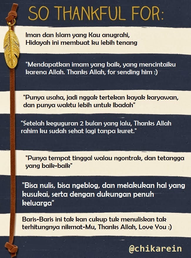 Ah, kalo mau dituliskan nikmat Allah nggak akan habis-habisnya. Termasuk rasa syukur saya bisa menuliskannya, bisa ngeblog, dan bisa travelling bareng suami. Dan kesemuanya saya lakukan dengan bahagia. Thanks Allah, I Love to be Me Nggak ada kata kurang selama kita besyukur, benar kan??