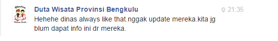 Pekan ketiga #LBI2015 kali ini cukup menantang saya sehingga baru hari ini bisa menuliskan postingan tema. Bukannya tidak ingin menulis, namun sulitnya pencarian data agenda wisata Bengkulu membuat saya butuh waktu beberapa hari untuk mengumpulkan informasi. Sempat kualahan karena Dinas Pariwisata tidak update soal agenda wisata. Saya maklumi, karena melihat tahun-tahun sebelumnya launching agenda wisata pun baru dimulai pada bulan februari atau maret. Bahkan saya sempat minta info dari Duta Pariwisata Bengkulu, ternyata hasilnya pun nihil. mereka yang notabanenya sebagai agen yang akan mempromosikan wisata pun belum punya info akan agenda wisata apa yang akan berlangsung di Bengkulu sepanjang tahun 2015.