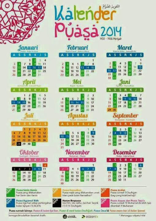Kebetulan beberapa waktu yang lalu berselancar ke fanspage nya OSD (Oki Setiana Dewi) ketemu Kalender Puasa Tahun 2014 (1435-1436 Hijriyah)