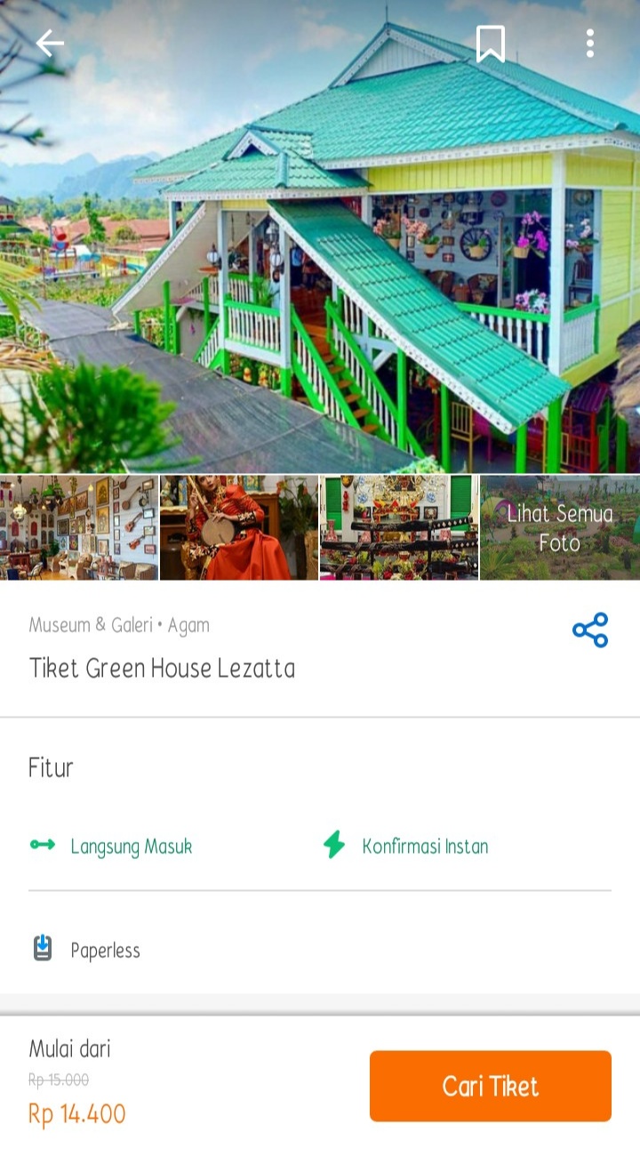 Murah meriah euy, bawa keluarga rame-rame nggak berat di kantong. Ini rekomendasi saat ummi cek di Traveloka Xperience. Tiketnya 15.000 dan sekarang lagi diskon jadi 14.400 . Tempat ini cocok banget buat keluarga. Letaknya nggak jauh dari Bukittinggi. Green House Lezatta adalah sebuah fasilitas rekreasi lengkap yang menawarkan kebun bunga dan tanaman berwarna warni., puluhan spot foto di depan rumah mungil dengan desain unik. Kita juga bisa sewa pakaian tradisional, menikmati lukisan 3D yang realistis dan ajak si kecil ke kolam renang tanpa biaya tambahan.