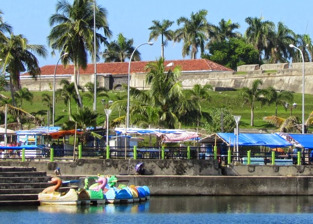 menikmati pemandangan di sekitar pantai dari tengah danau buatan yang