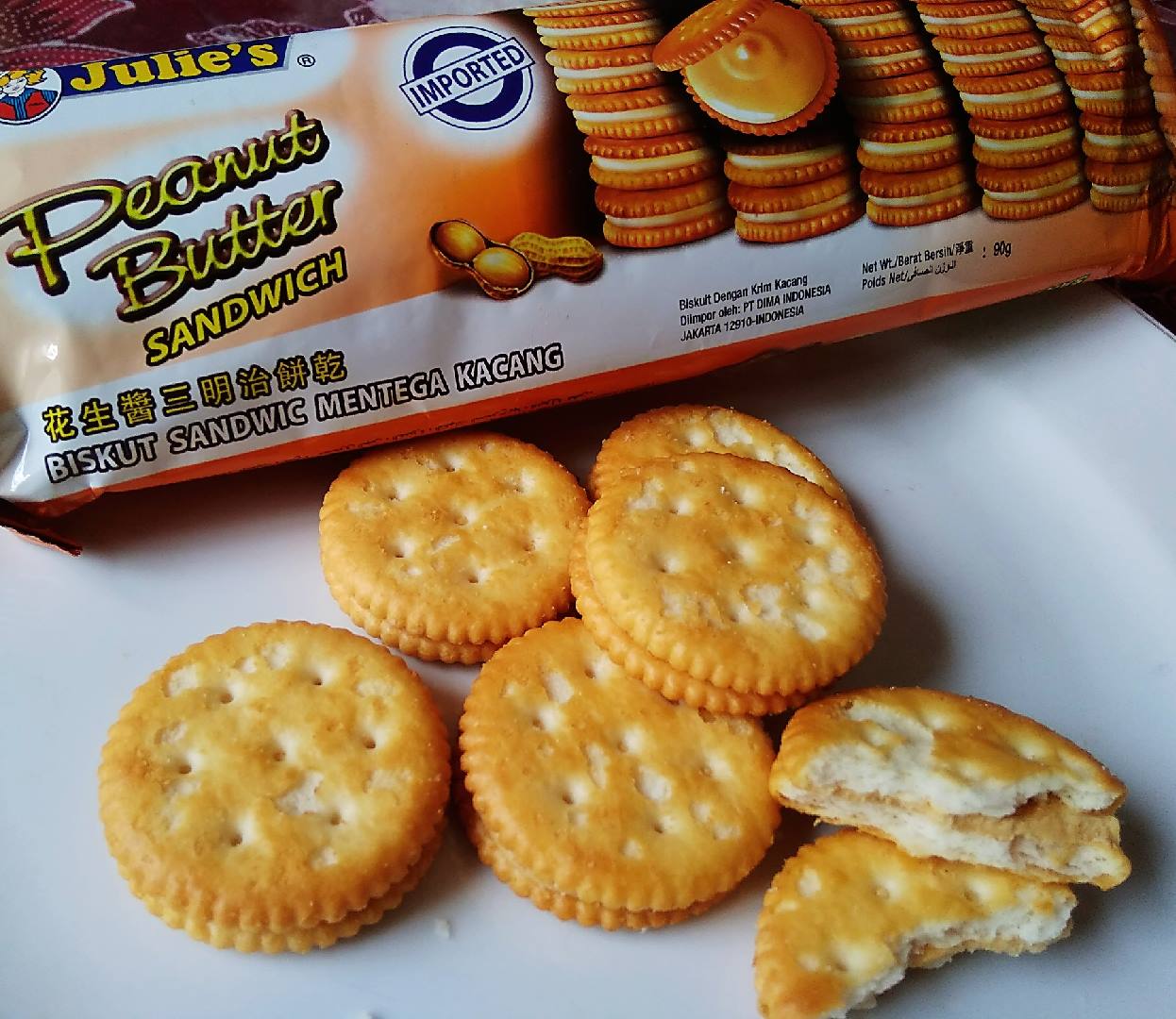 Julie’s Peanut Butter Sandwich ini merupakan biskuit sandwich mentega dengan selai kacang, berawarna emas creamy dan punya rasa yang enak, renyah. Ada rasa asin, manis dan gurih khas kacang yang pas banget dilidah. Ukuran biskuitnya tidak tebal pun tidak terlalu tipis jadi saat digigit, renyah banget… Jangankan ubay, saya juga doyan. Apalagi sambil minum secangkir kopi panas. Wah, bisa habis satu bungkus sendirian. Ada juga varian Julie’s Chocomore yang merupakan biskuit coklat yang pasti disukai anak-anak.