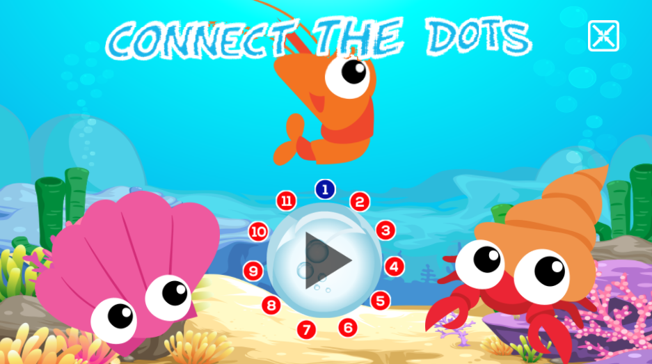 Game connect the dots ini merupakan salah satu game yang cukup sederhana untuk dimainkan oleh anak. Dengan gambar-gambar hewan laut yang menarik, anak-anak diminta untuk menyambungkan angka agar membentuk sebuah gambar yang akan muncul setelah semua selesai.