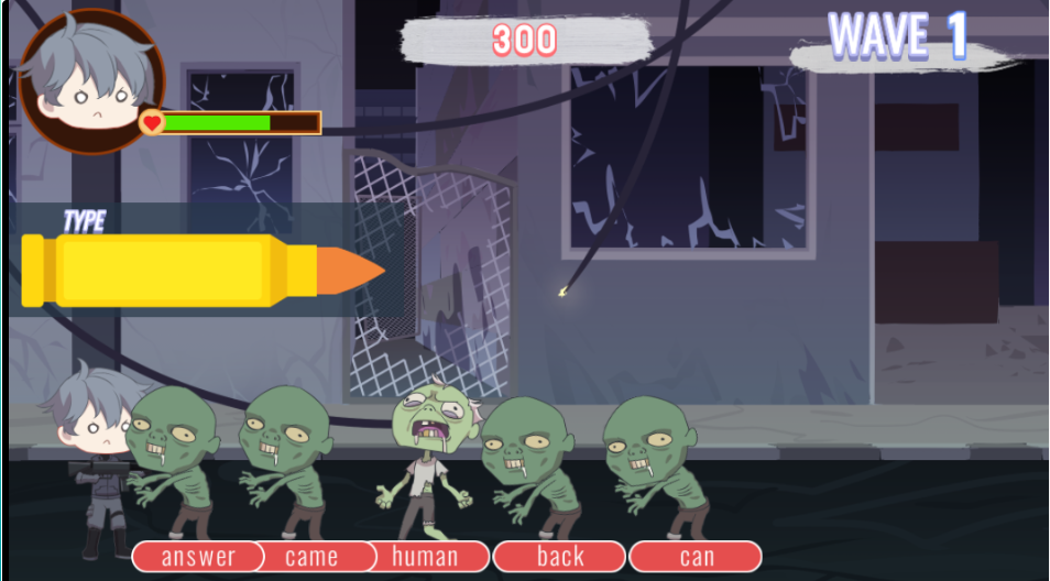 Jika kita mengetik huruf yang salah, kata tersebut akan dihapus dan Anda harus mulai mengeja kata lagi dari awal. Ketika zombie mendekat dan mereka akan menyerang. Setelah 4 pukulan, kita akan mati. Oya di setiap putaran berikutnya zombie bergerak lebih cepat. Untuk itu diperlukan konsentrasi, ketelitian serta kecepatan dalam memahami dan mengetik kata. Ini akan melatih otak anak agar berpikir cepat.