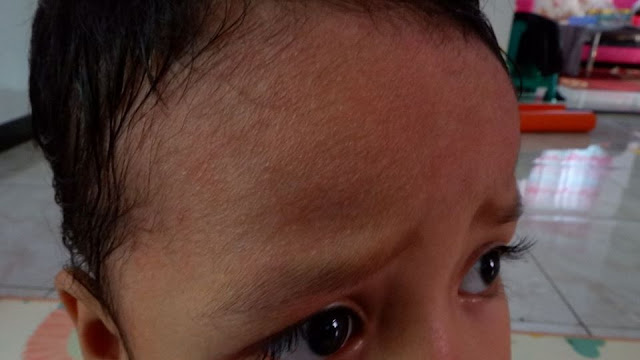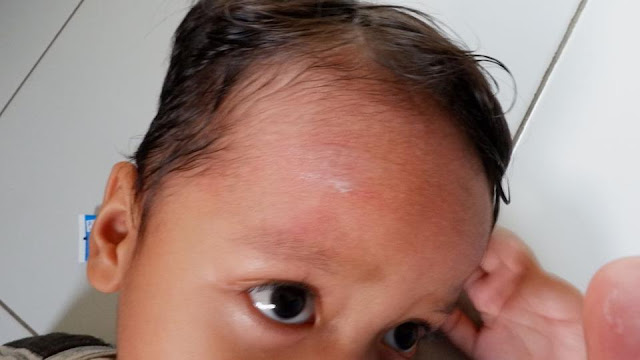 Sejak kecil, si sulung Ubay seringkali mengalami gatal-gatal di kulitnya. Awalnya saat berusia 10 hari ada bentol-bentol berisi cairan di seluruh tubuhnya. Ketika pecah, bentol-bentol semakin banyak dan menyebar. Sudah coba banyak obat tradisonal tapi tak kunjung sembuh, hingga ia harus minum obat dari dokter barulah kulitnya membaik. Kata dokter sih Ubay punya kulit sensitif yang sangat peka terhadap panas, dingin, sabun maupun bedak bayi. Jadi dokter menyarankan saya untuk tidak ganti-ganti produk bayi jika sudah menemukan yang pas untuk Ubay. Bahkan nih saat itu dokter tidak membolehkan Ubay untuk menggunakan sabun maupun shampoo, cukup di mandikan dengan air hangat saja.