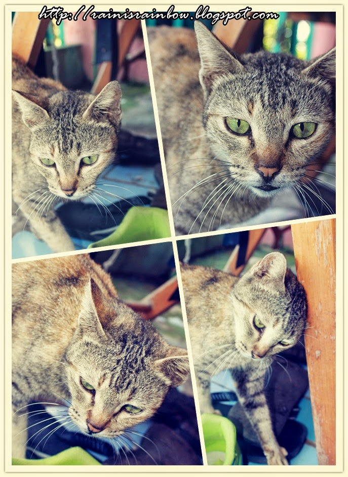 Walaupun saya acuh sama dia, dia selalu ada di pintu depan kontrakan atau di dekat jemuran. Si kucing tanpa nama ini kayak nggak tega ninggalin kontrakan saya :))