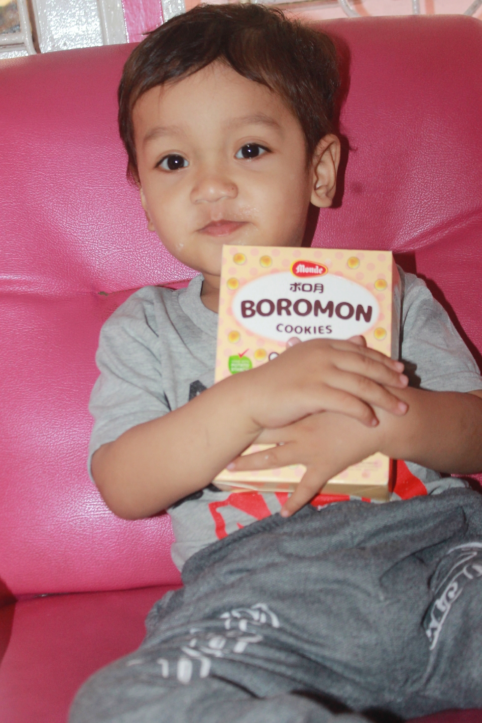 Monde Boromon Cookies punya bentuk bulat yang lucu dan menggemaskan, begitupun kotaknya yang bewarna menarik.  Ghazy suka banget jika diajak bermain dengan kotaknya dan memindahkan cookies ke wadah lalu memakannya sendiri.